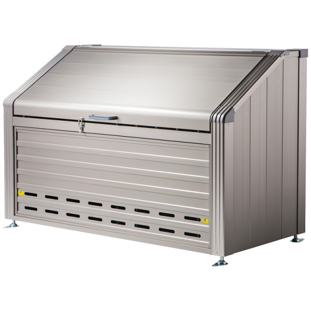 高級感のあるデザインで景観にも調和するアルミ製のゴミステーションです。住宅街・マンション・商業施設・公共施設など、シンプルで高級感のある外観は、従来のゴミ置き場のイメージを変え、設置場所の景観を損なわないゴミステーションとして多く採用されています。