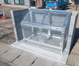 プラスチック・FRP製のゴミステーションは、軽量で扱いやすいことが大きな特徴です。設置や移動が比較的簡単に行えるため、自治会・店舗・施設など、さまざまな場所で導入されています。